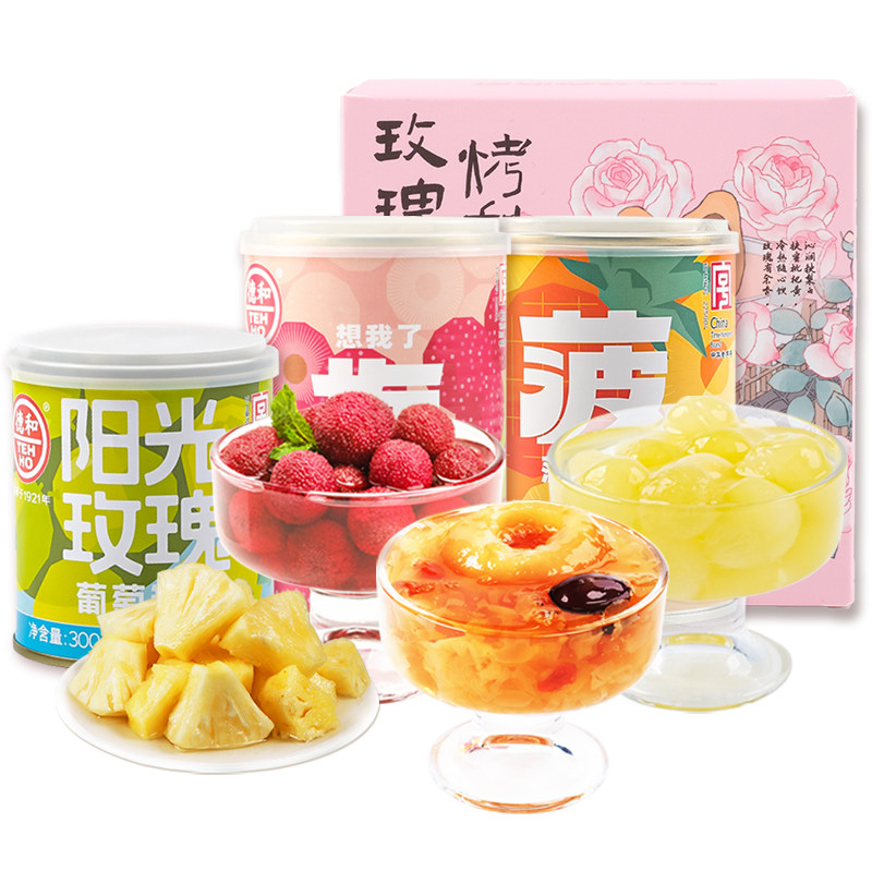 德和水果罐头云南杨梅版纳菠萝阳光玫瑰葡萄玫瑰烤梨整梨罐头