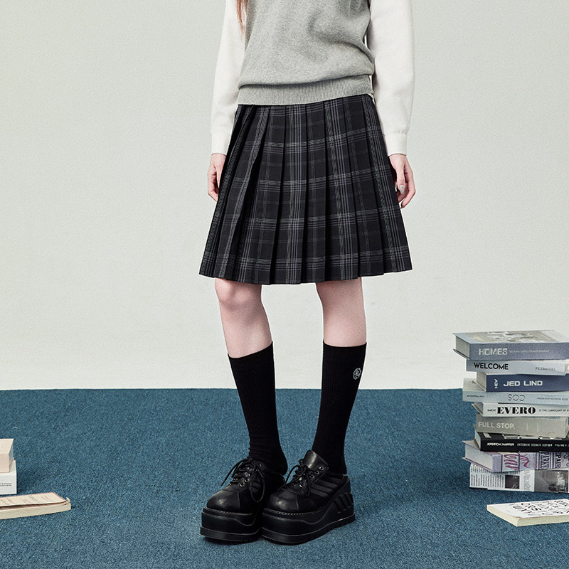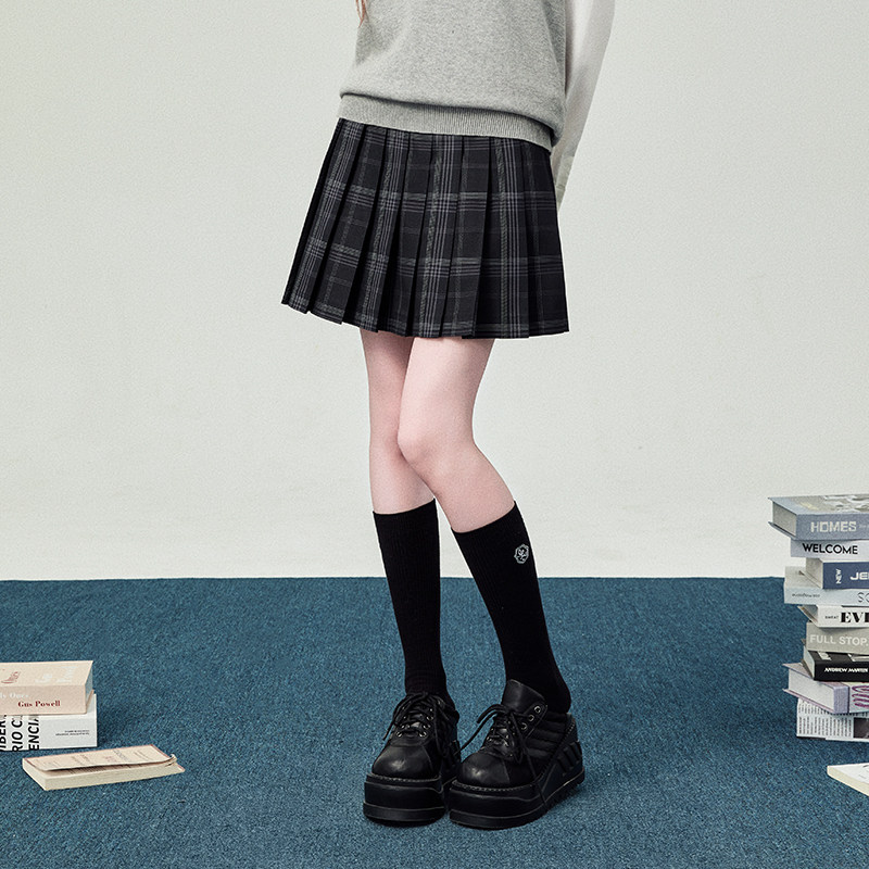花铃太太jk短裙渊黑色小格子裙女学院风百褶高腰显瘦春季半身裙子