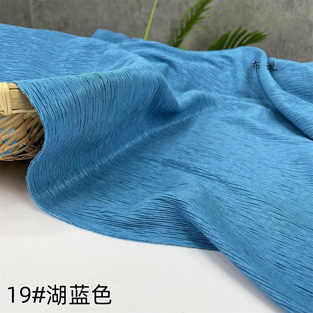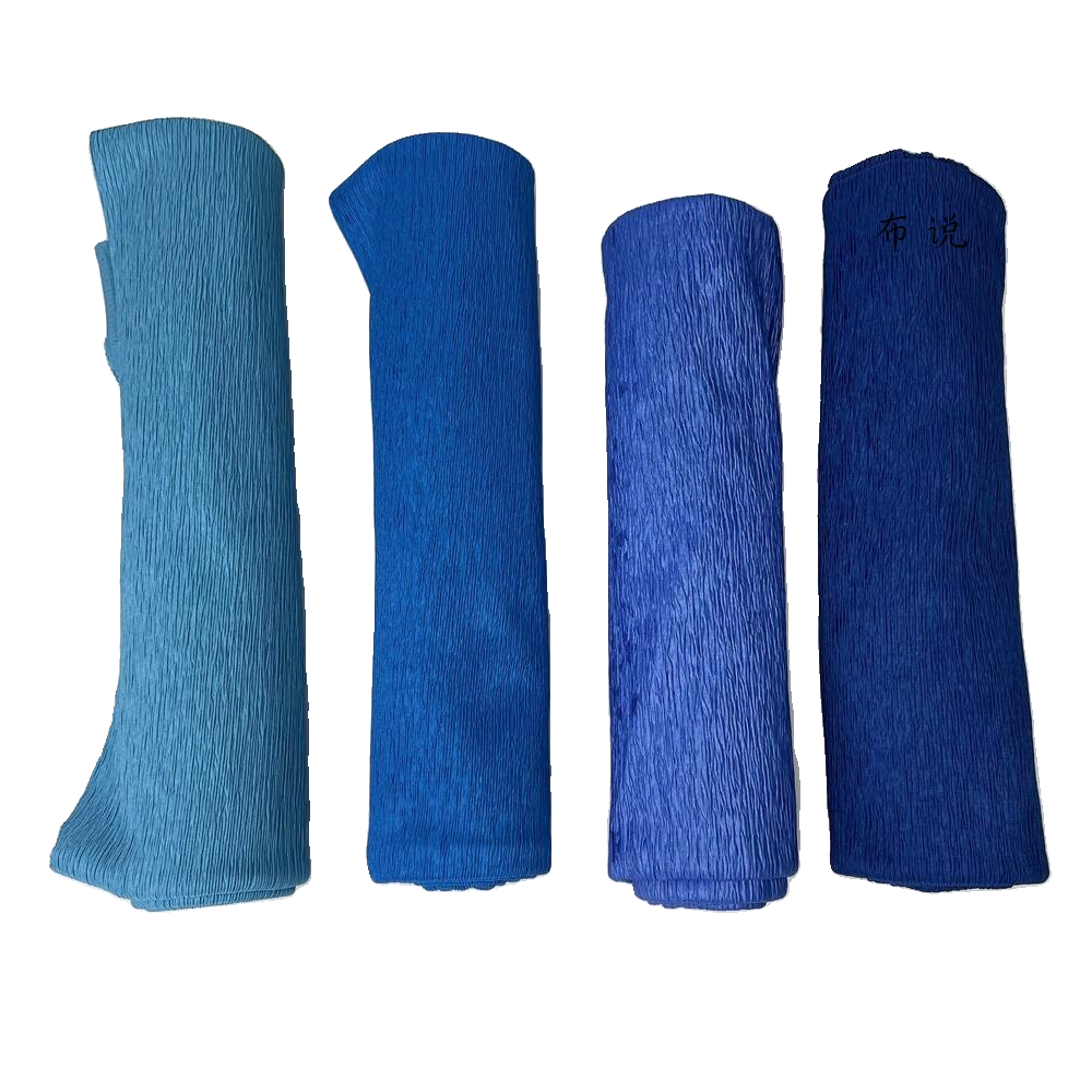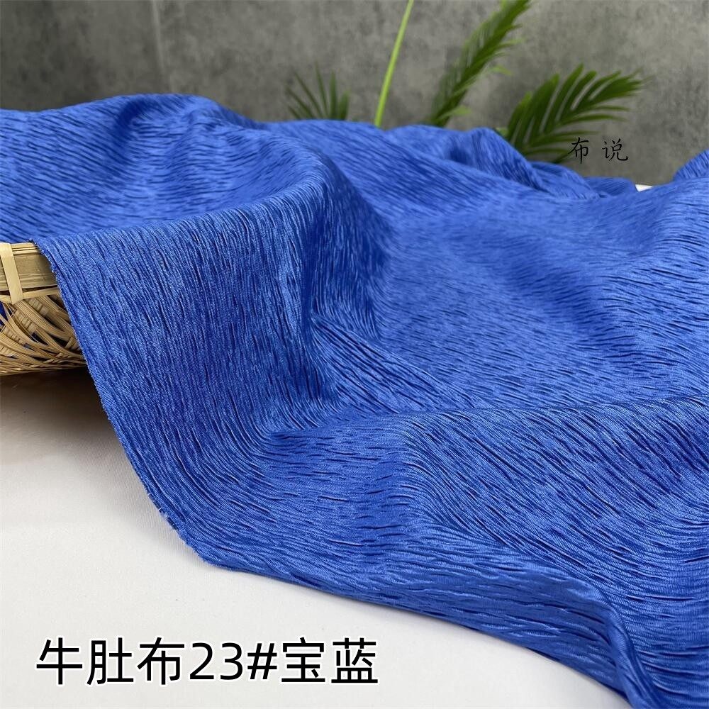 宝蓝色系牛肚布树皮皱褶皱布料