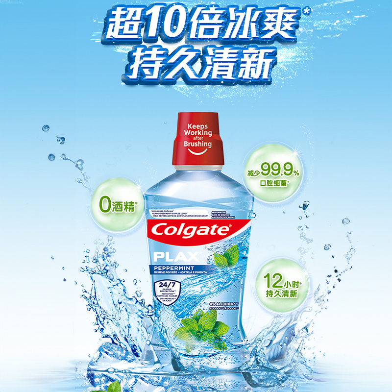 高露洁活动柚子+酷爽漱口水0酒精不刺激清新口气清洁500ml*2瓶