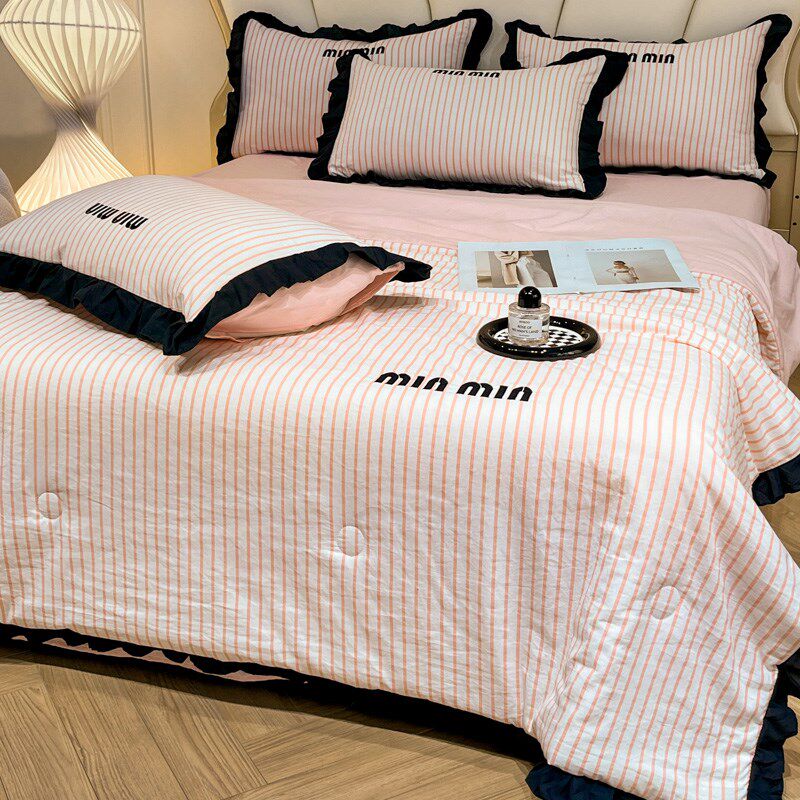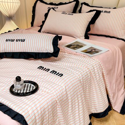 少女心水洗棉夏凉被四件套床笠款可机洗公主风空调被双人冷气被芯