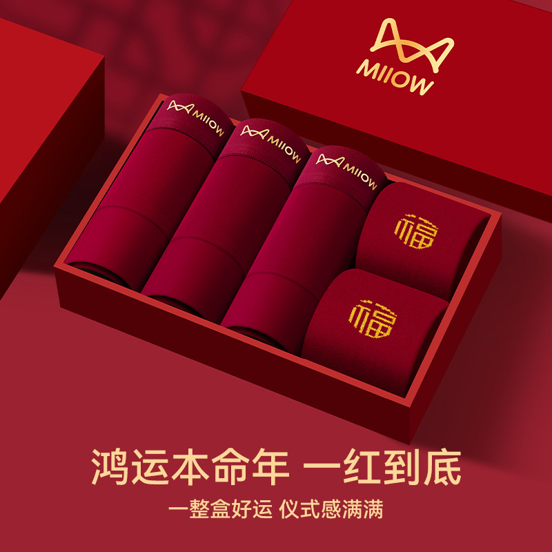猫人本命年男士内裤男生纯棉大红色三角裤头男款结婚送礼全棉短裤