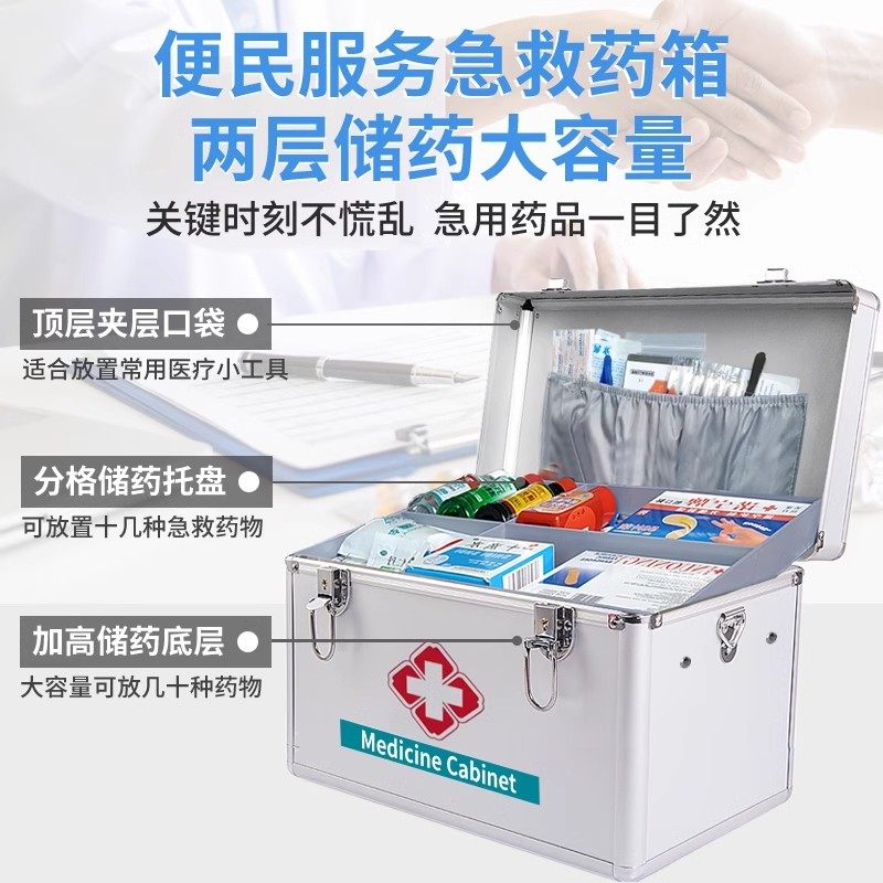 药箱铝合金医药箱工厂应急医疗箱家用收纳盒带锁壁挂式便民服务箱