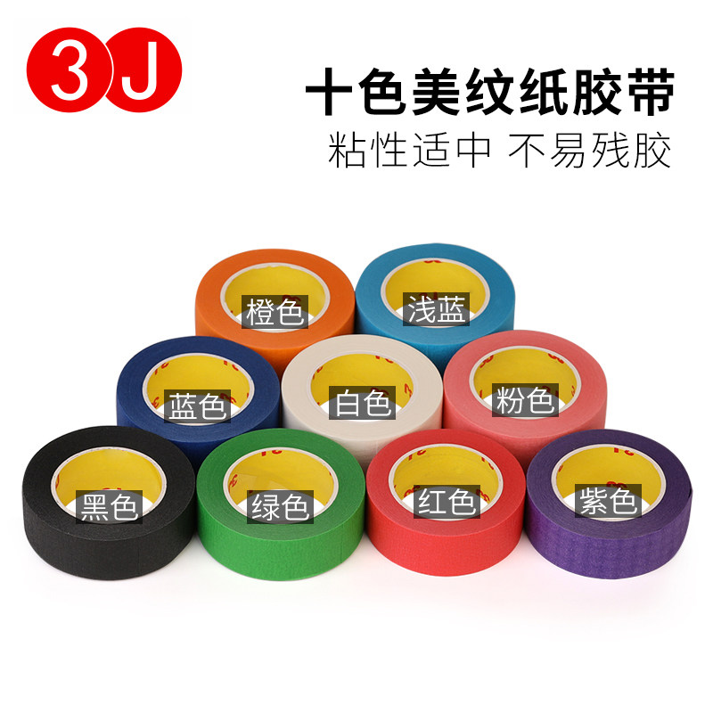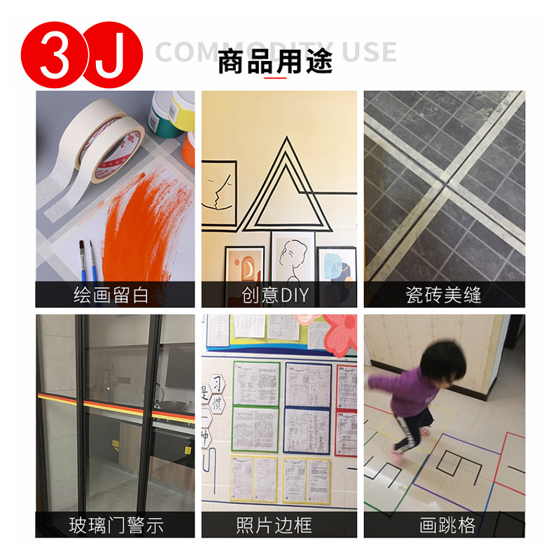 彩色胶带儿童早教贴纸宝宝撕美纹纸墙面无痕分色地标线不干胶美缝纸喷漆遮蔽红黑蓝色手工diy装饰美术生专用