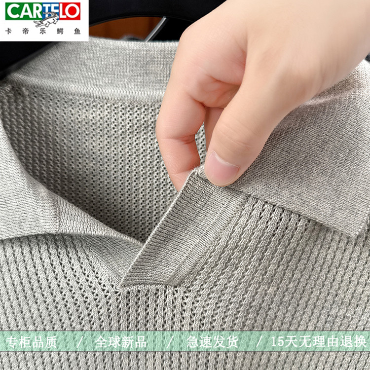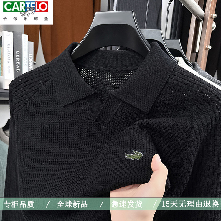 CARTELO鳄鱼男秋冬新款翻领针织衫毛衣长袖polo衫纯棉海鸥领亲肤