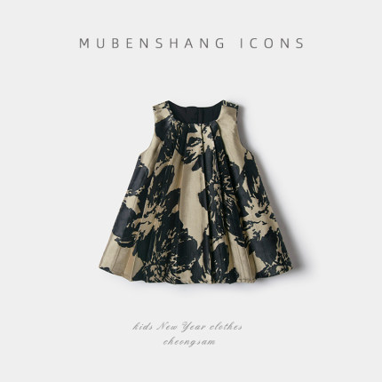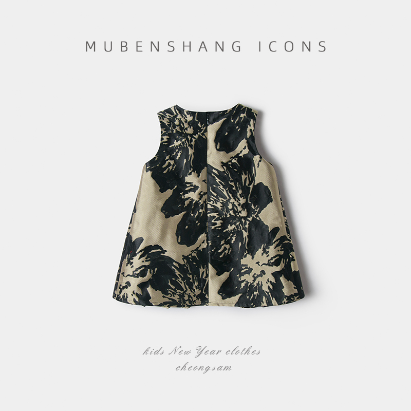 木本尚女童春夏连衣裙2025新款宝宝背心裙百褶裙大花圆领儿童裙子