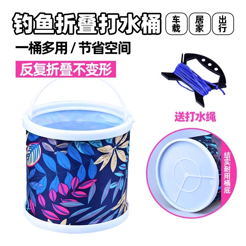 钓鱼可折叠打水桶活鱼箱装鱼桶多功能带绳防跳网小鱼桶渔具鱼护桶