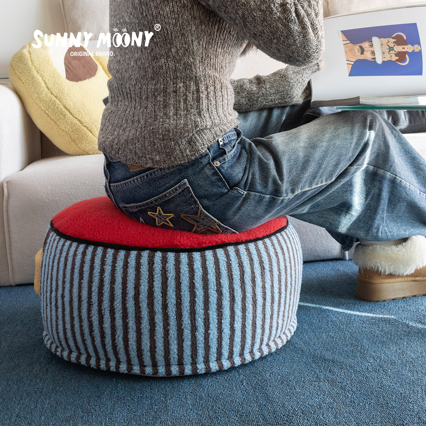 原创家居客厅卧室毛绒小狗坐墩蒲团脚墩矮凳懒人沙发坐垫可拆洗