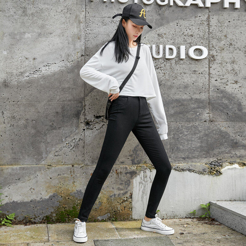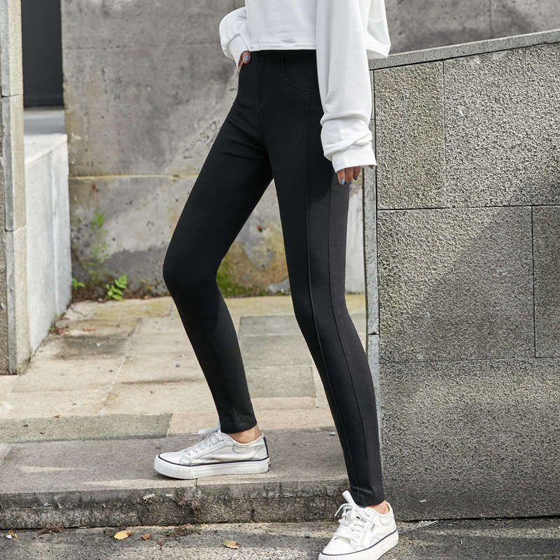 黑色裤子女秋冬高腰弹力小脚裤2024新款外穿保暖显瘦打底女裤春秋