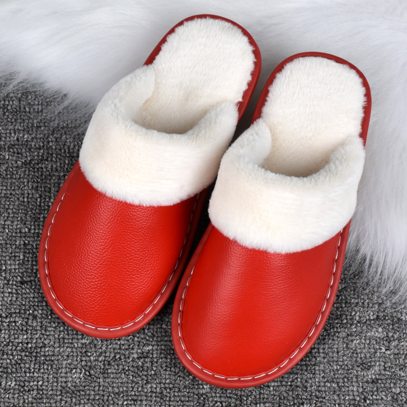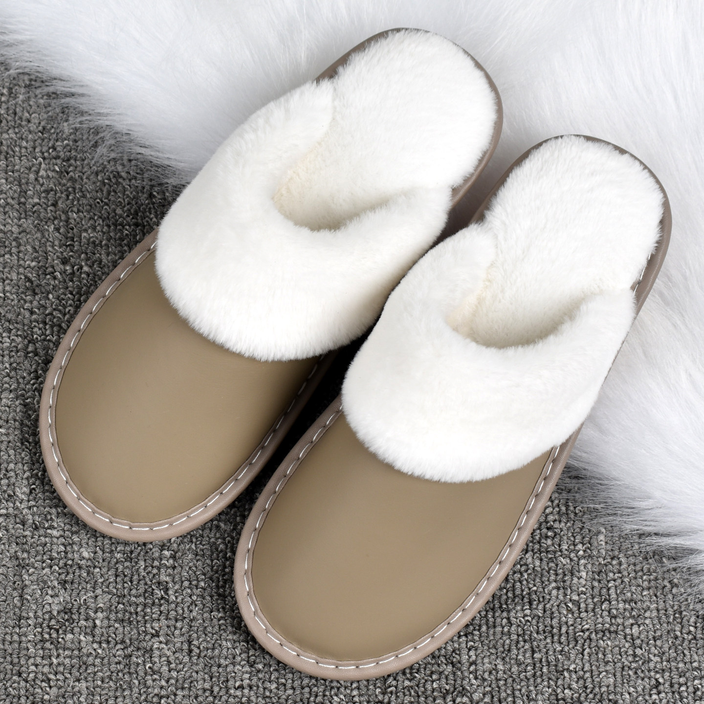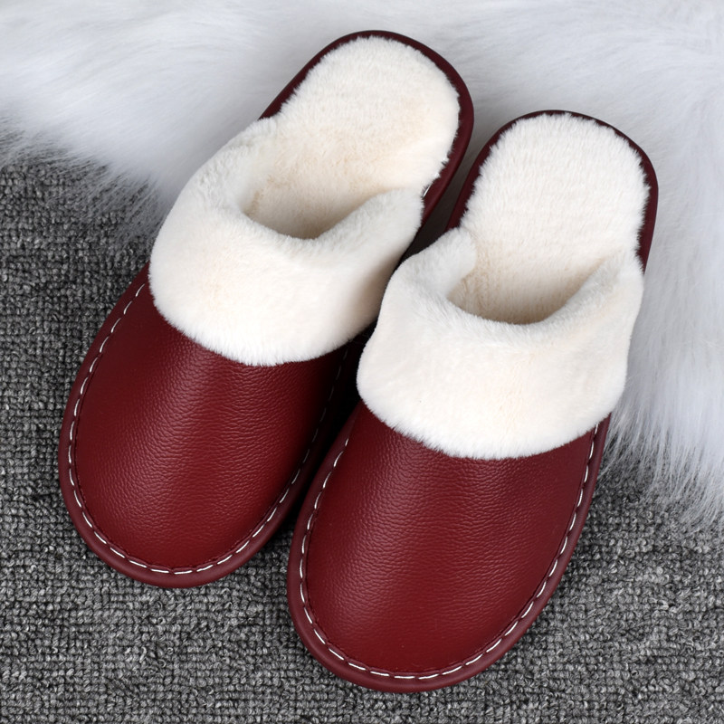 头层牛皮真皮居家拖鞋男女家用室内防滑冬季加厚保暖棉拖鞋牛筋底