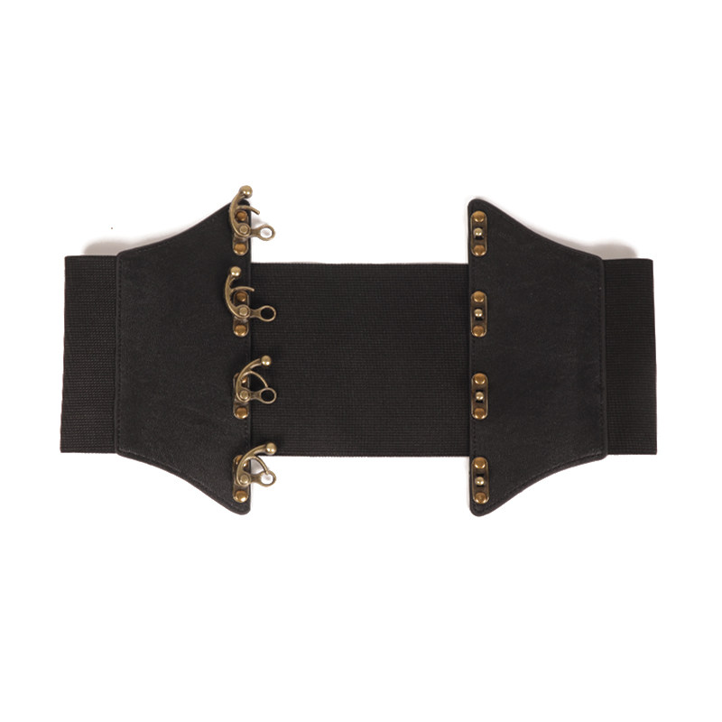 女松紧复古黑色腰带现货