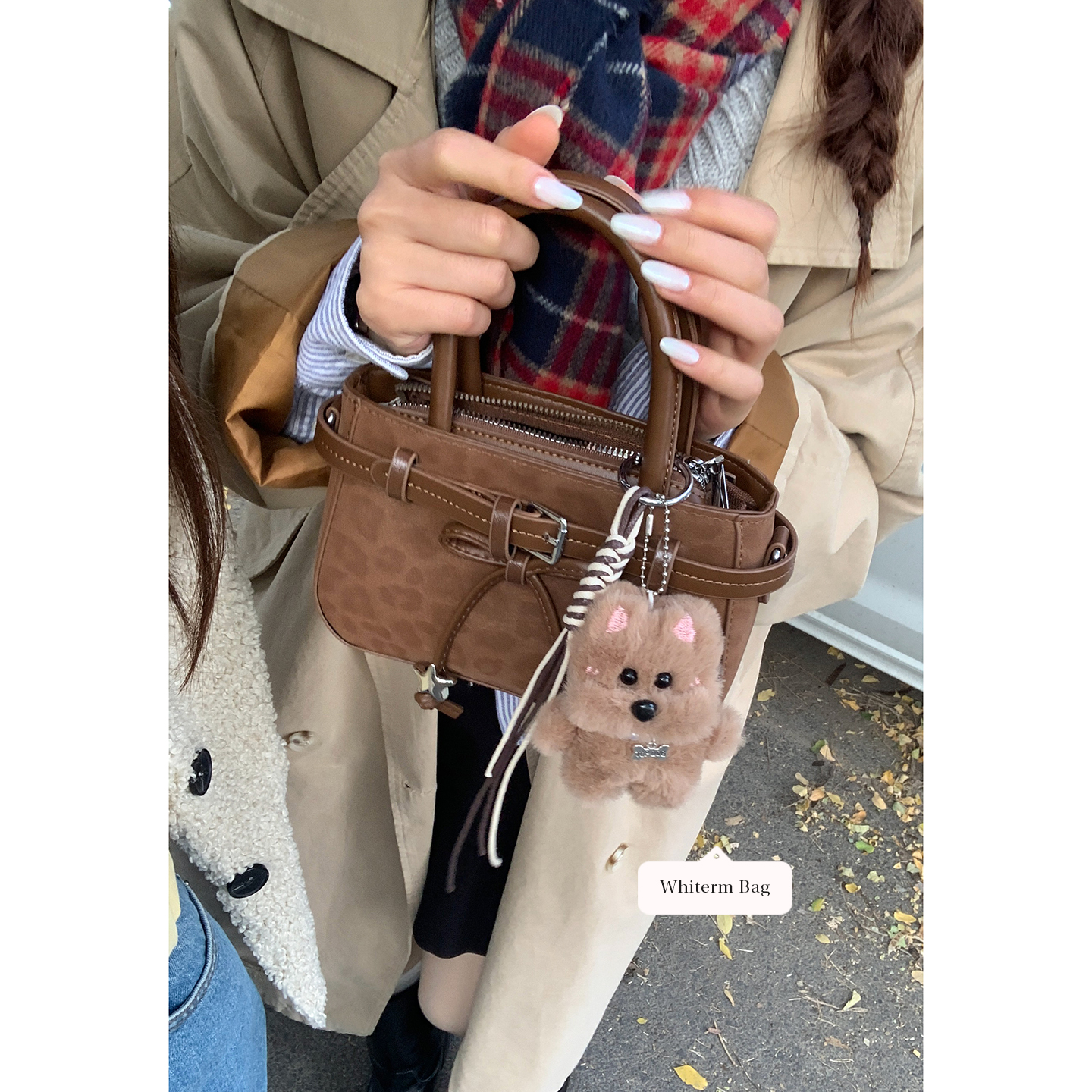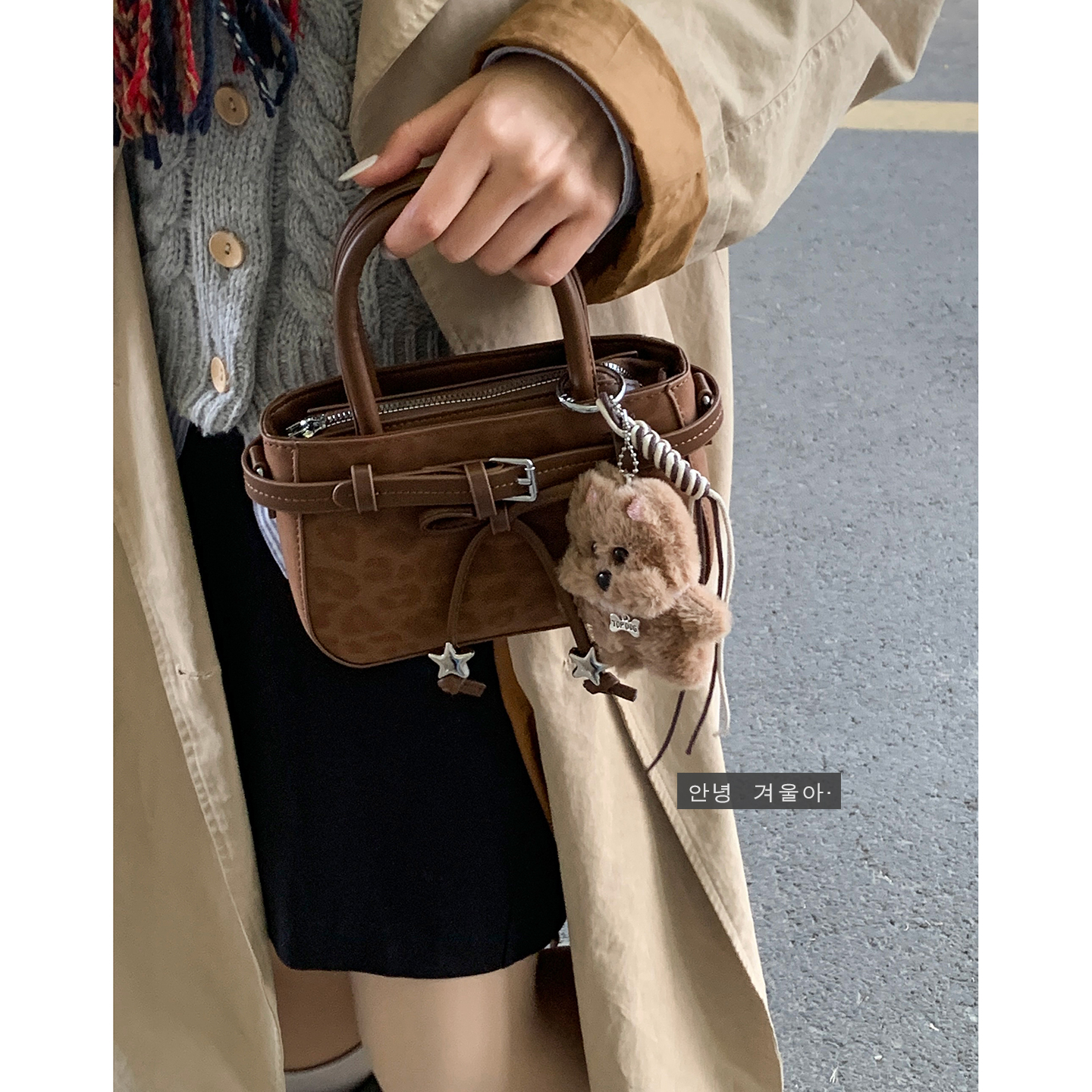 复古豹纹手提包包女秋冬2025新款潮时尚麂皮绒凯莉包斜挎小方包