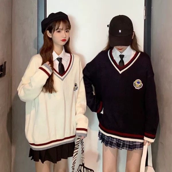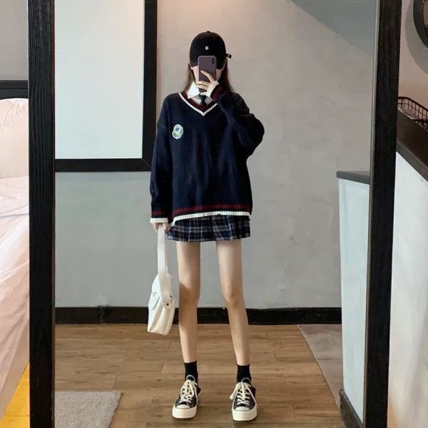 毛衣针织衫女学生V领套头外穿2022秋冬款日系学院风班服两件套装