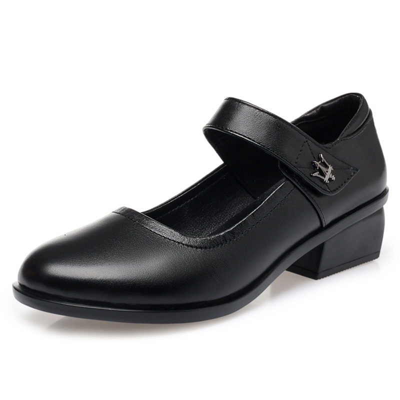 中老年粗跟软底妈妈走秀女士皮鞋
