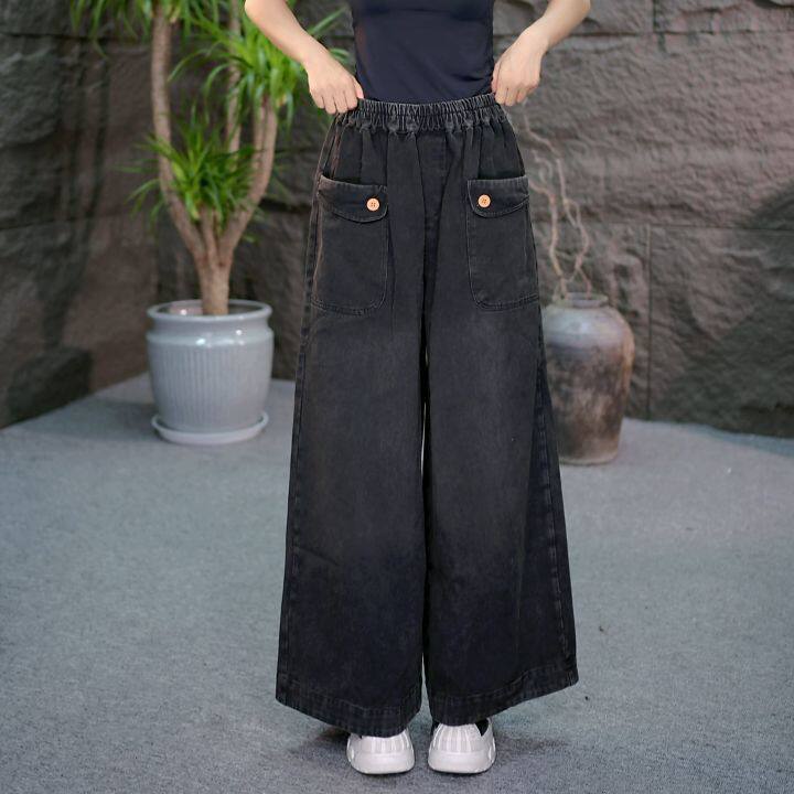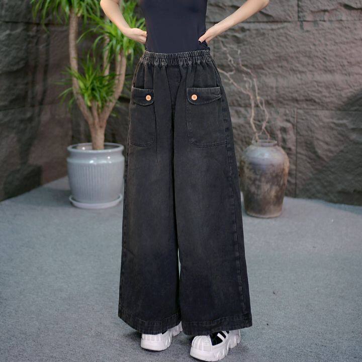 加绒加厚2025新款秋冬季显瘦宽松牛仔裤女装休闲复古风阔腿松紧腰