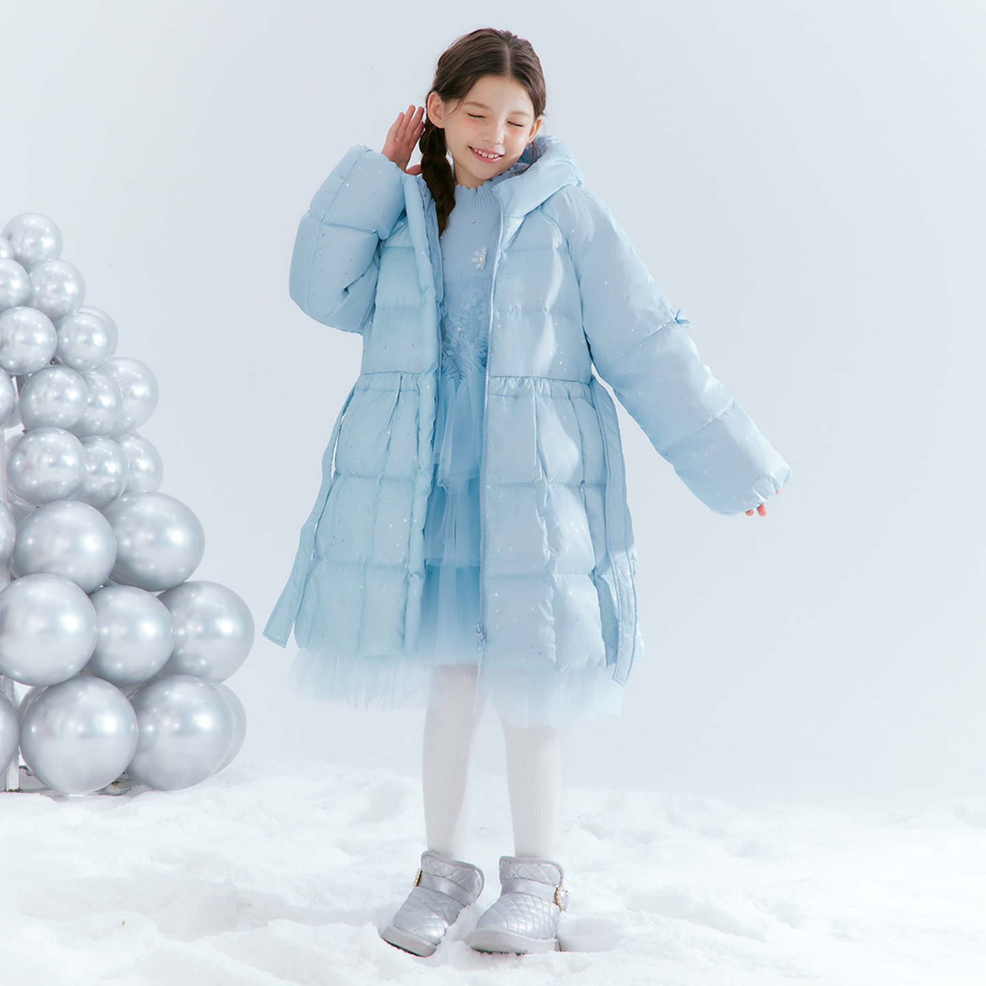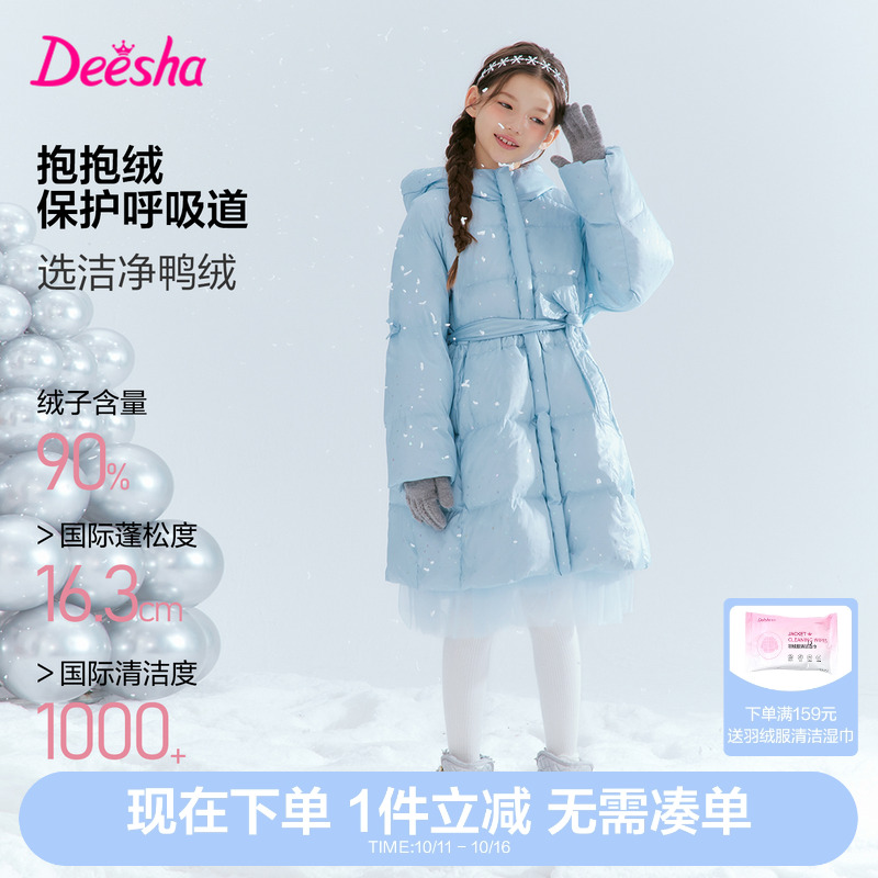 笛莎官方童装女童羽绒服冬季新款大童女孩儿童洋气中长款连帽外套