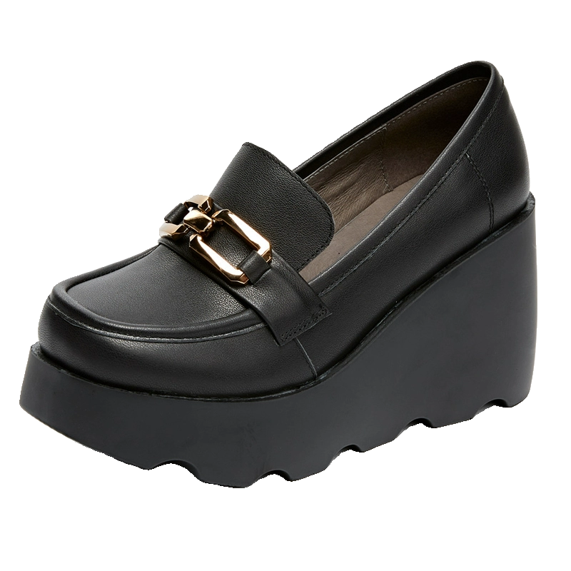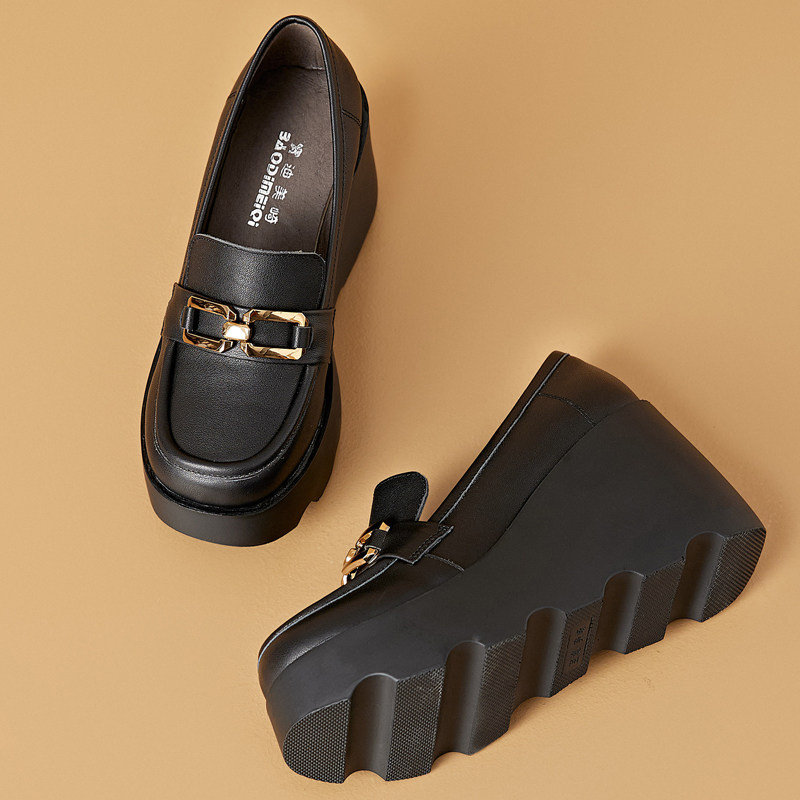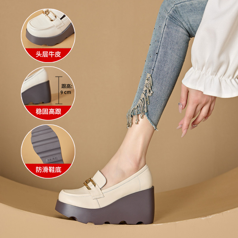 厚底增高英伦风一脚蹬小皮鞋真皮2025春秋新款高跟乐福鞋子单鞋女