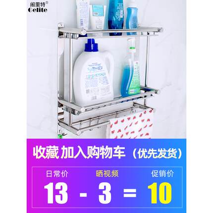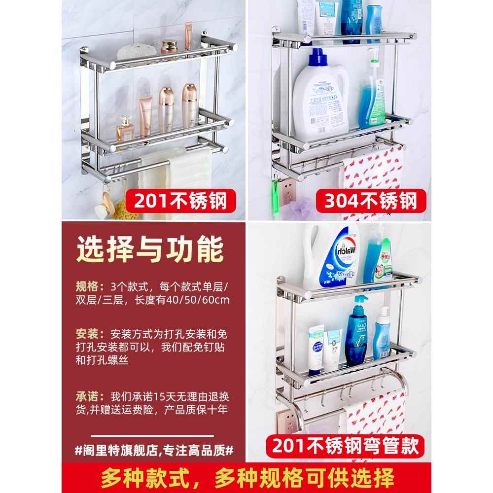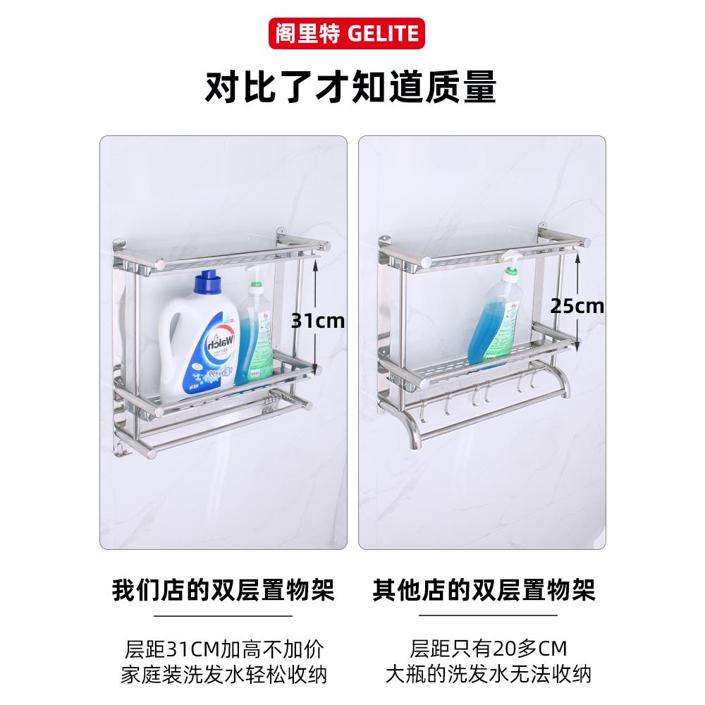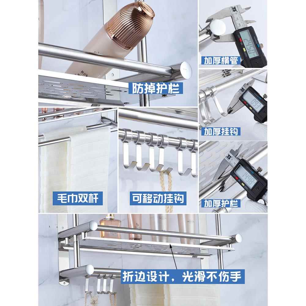 卫生间置物架壁挂不锈钢免打孔双层浴室毛巾架洗澡间沐浴房收纳架