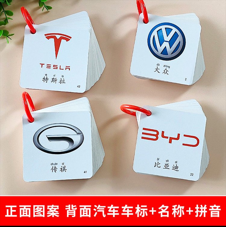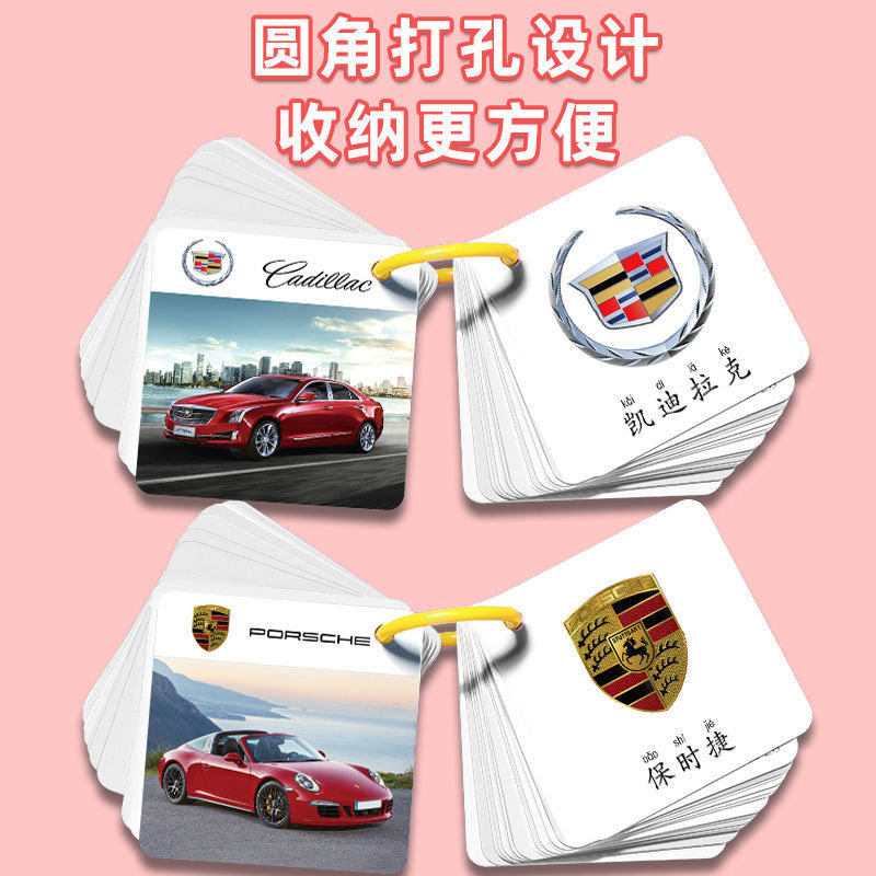 汽车标志卡片宝宝车标认知撕不烂儿童看图识物早教启蒙认知卡玩具