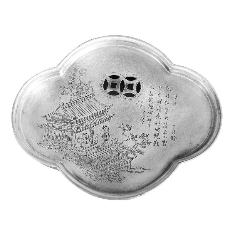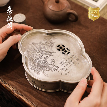秦藏阁雕刻诗文家用四方纯锡茶盘