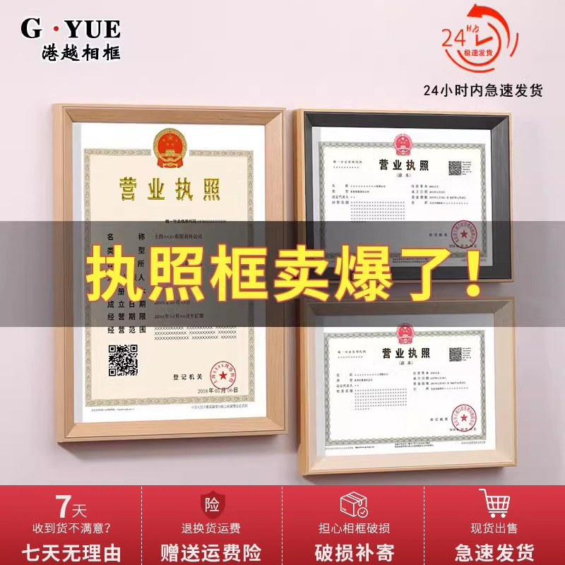 营业执照框架三合一挂墙a4A3正副本相框个体工商户许可证书框摆台