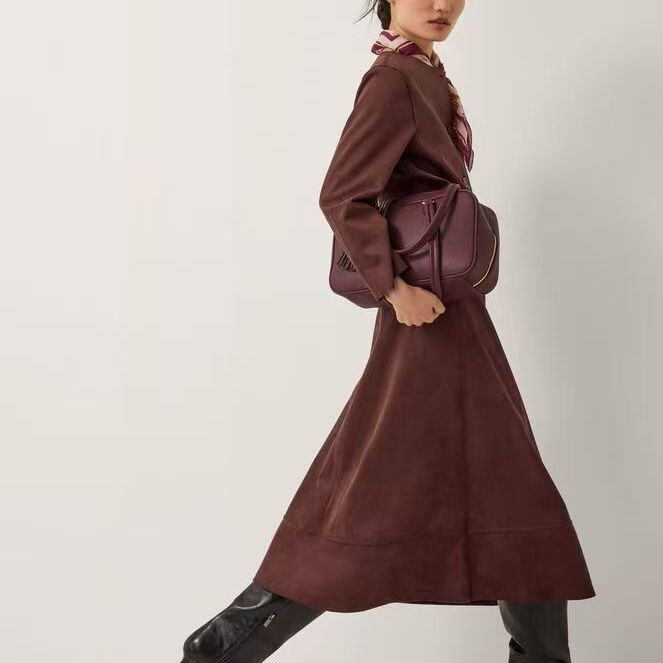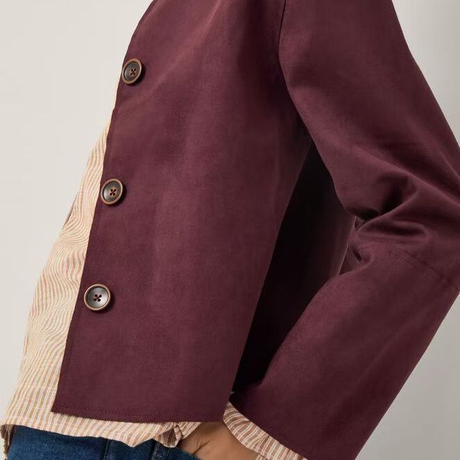 E5高级麂皮绒外套!外单纯元2025秋新款无领女士优雅时尚开衫外套
