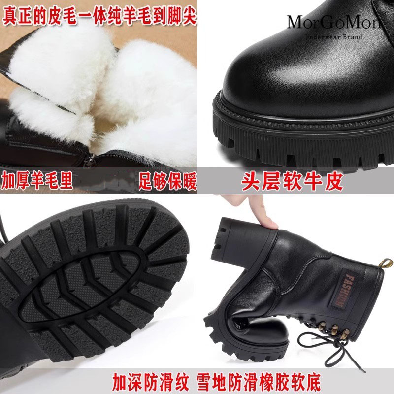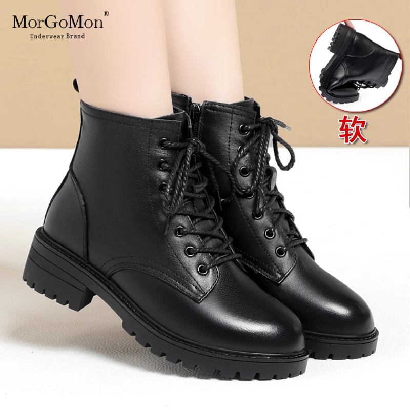 马丁靴女秋冬季加绒单靴女短靴粗跟厚底真皮靴子软底羊毛皮鞋女靴