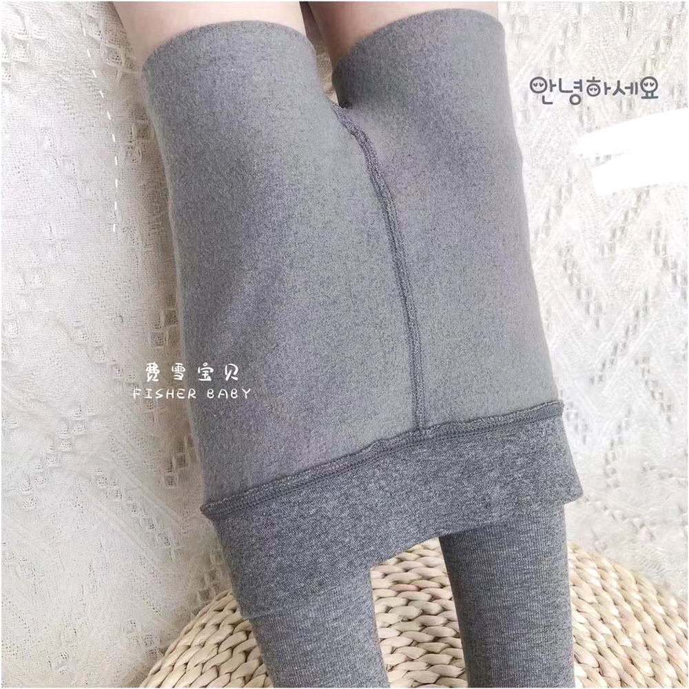 费雪宝贝秋冬内拉毛薄绒儿童连裤袜女童加档素版纯色打底裤连脚袜