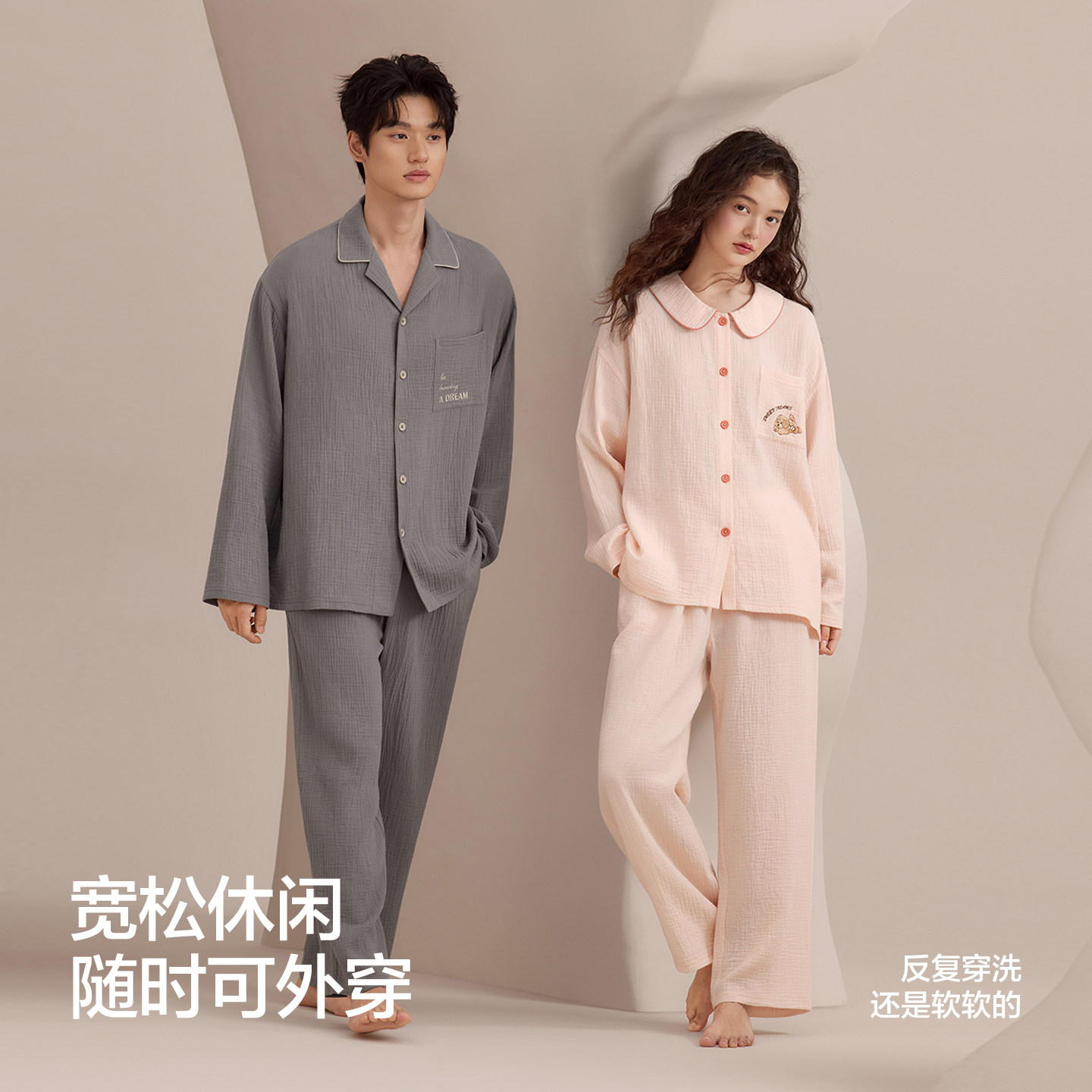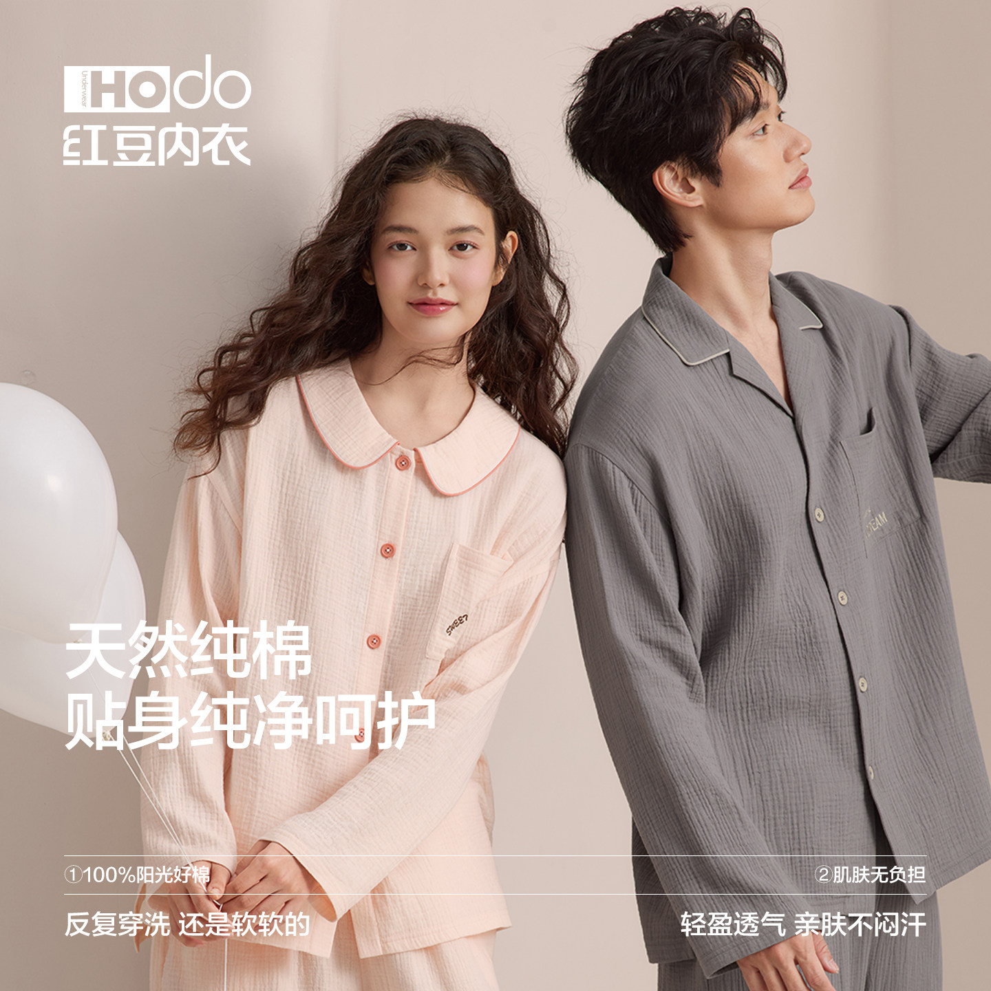 红豆情侣纯棉睡衣双层纱家居服