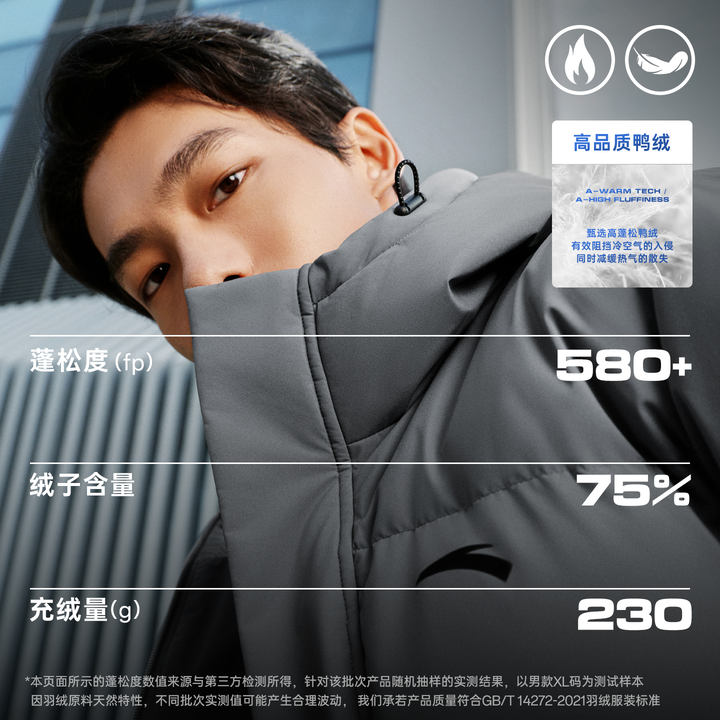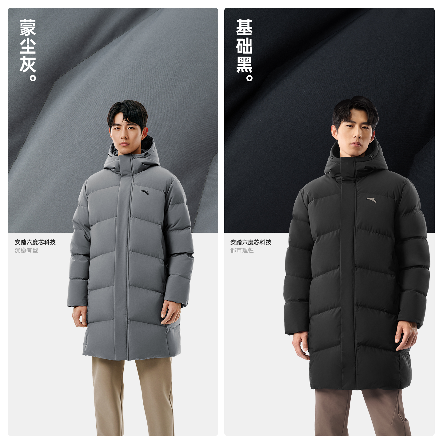 安踏面包羽绒丨中长款运动羽绒服男装2025冬季新款鸭绒棉服外套