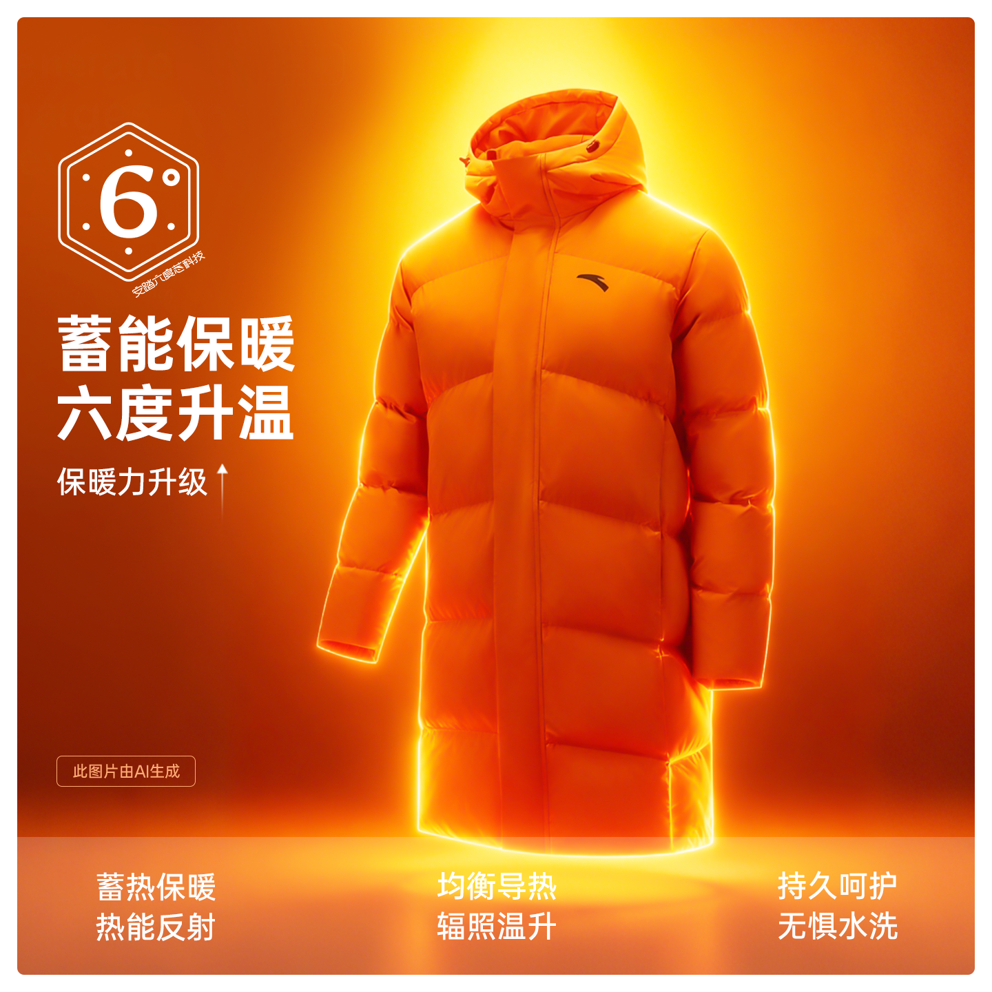 安踏羽绒服鸭绒保暖中长款厚棉袄