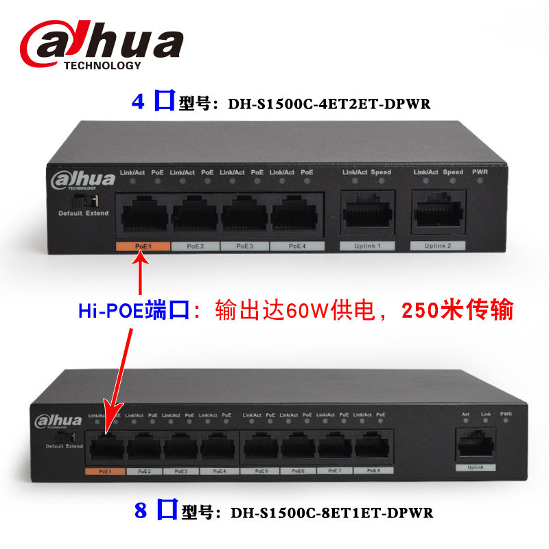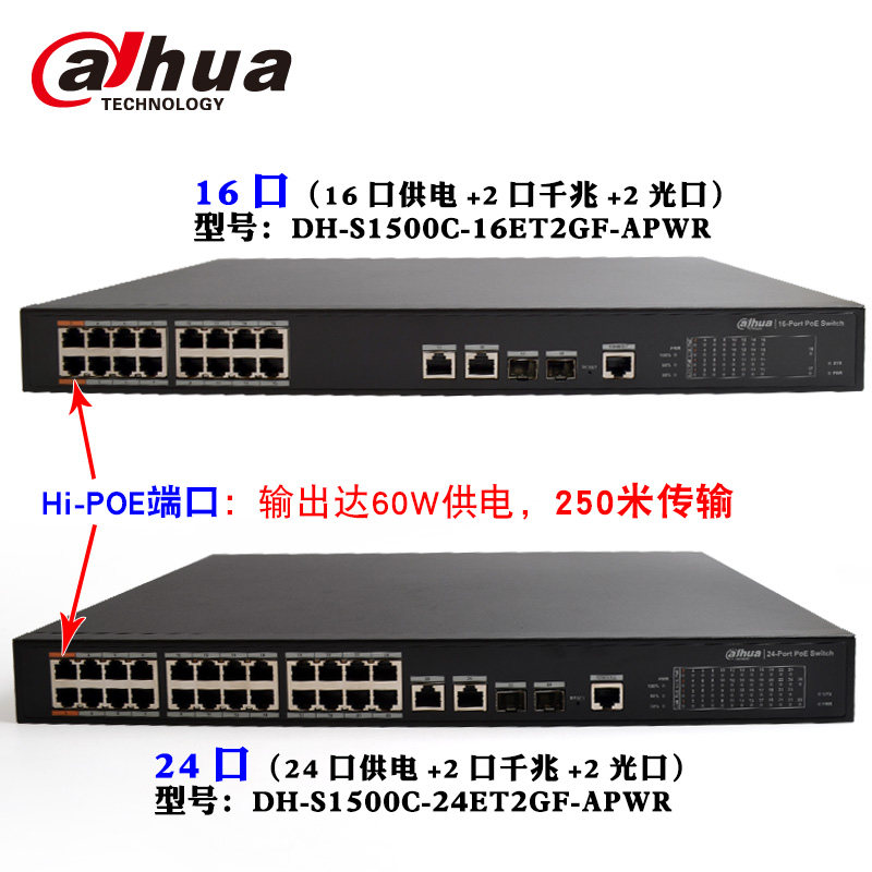 大华POE交换机网络摄像头4口网线供电监控8/16/24路全千兆大功率