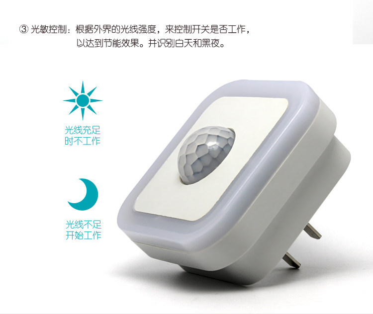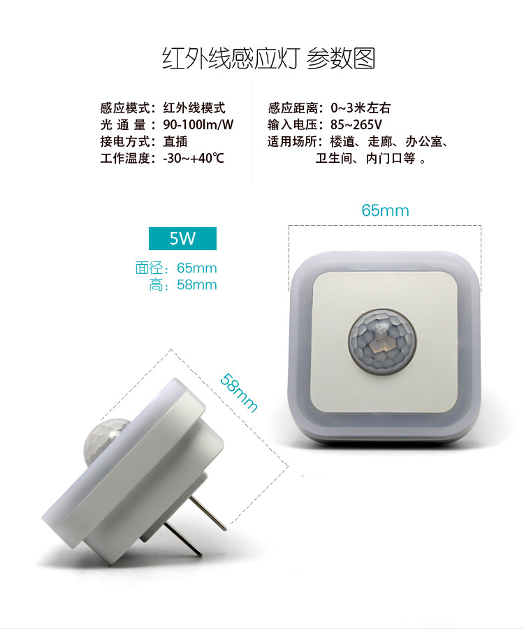 LED人体感应灯智能光控红外插电式小夜灯楼道卧室车库卫生间起夜