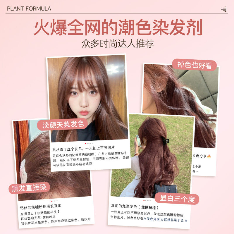 忆丝芸焦糖玫瑰粉棕色染发剂膏豆沙粉棕色树莓红正品植物免漂女