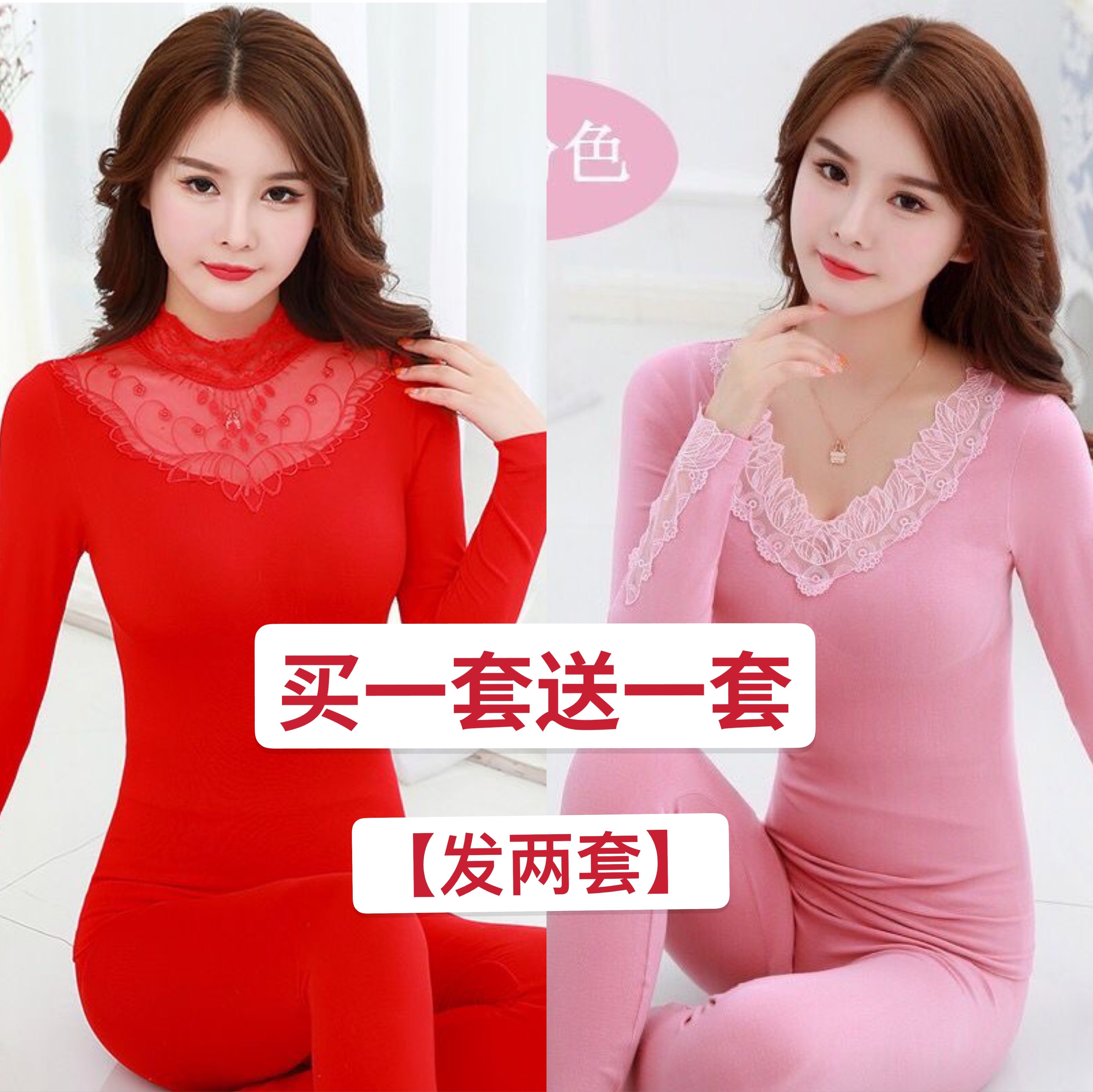 【买一送一】大红色本命年保暖内衣套装女莫代尔打底高领秋衣结婚