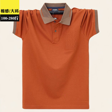特色拼色商务中老年翻领短袖T恤男士加肥加大棉感半袖肥佬polo衫