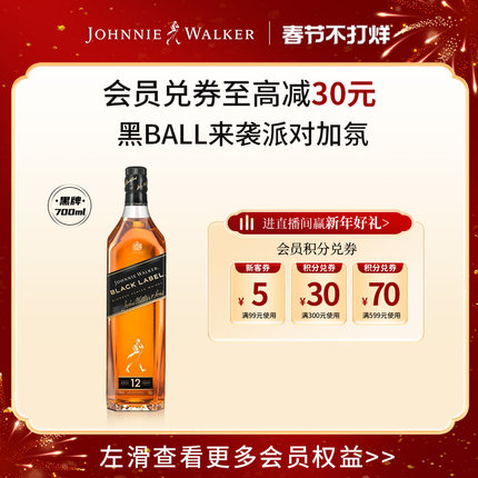 【官方旗舰店】尊尼获加黑牌黑方威士忌700ml洋酒调配威士忌无盒