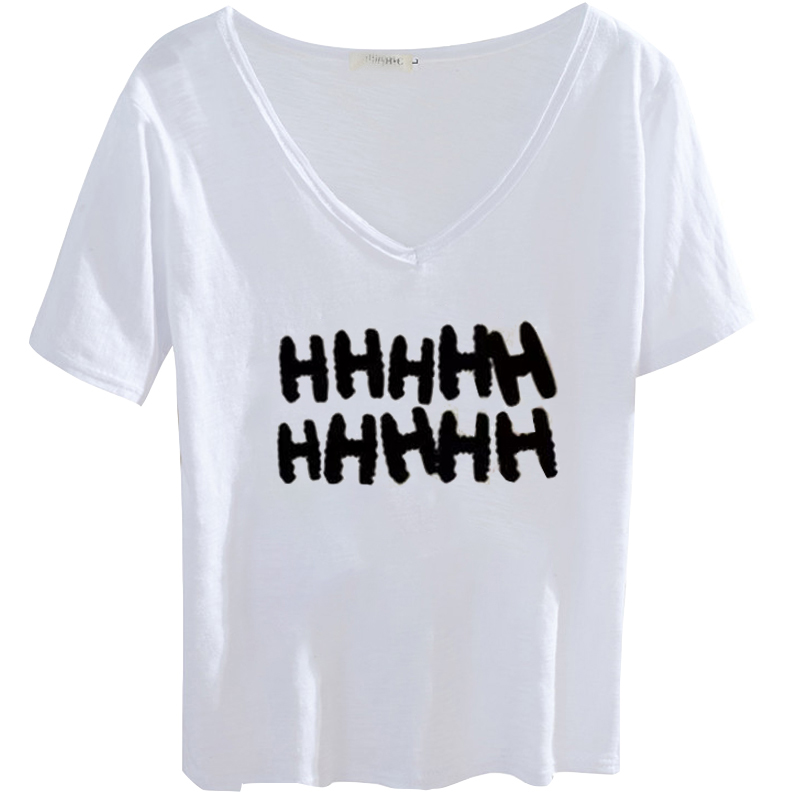 白色V领竹节棉短袖T恤女装夏季新款体恤宽松休闲设计感上衣