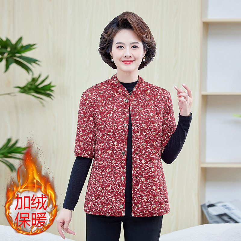中年妈妈冬季半袖夹棉马甲中老年女装保暖马夹奶奶装加绒加厚棉衣