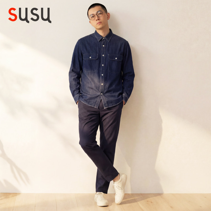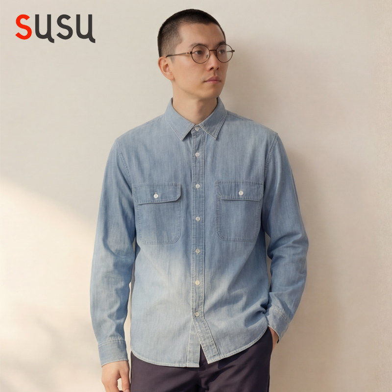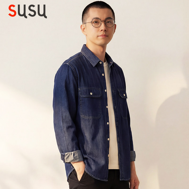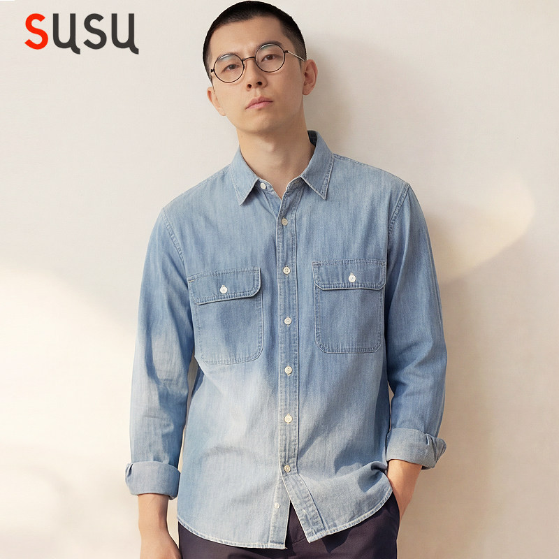 日系牛仔衬衫男长袖韩版春秋款水洗宽松内搭上衣休闲痞帅衬衣新款