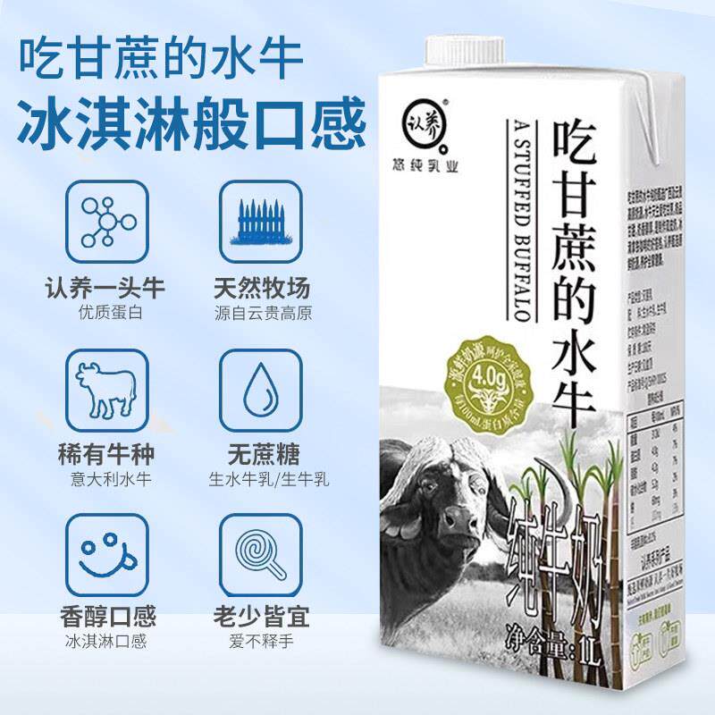 吃甘蔗的水牛奶1L咖啡拿铁奶茶店原料水牛乳鲜奶茶餐饮家用纯牛奶