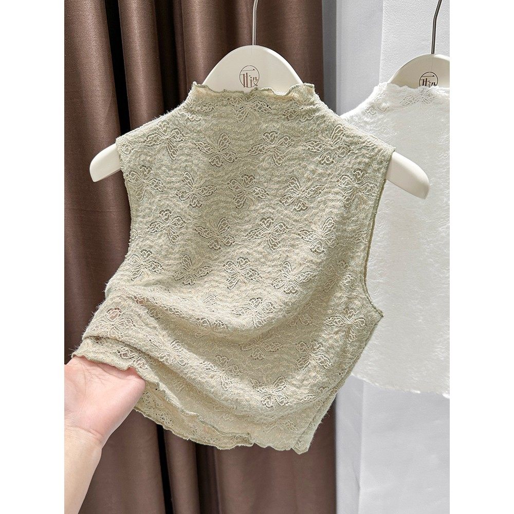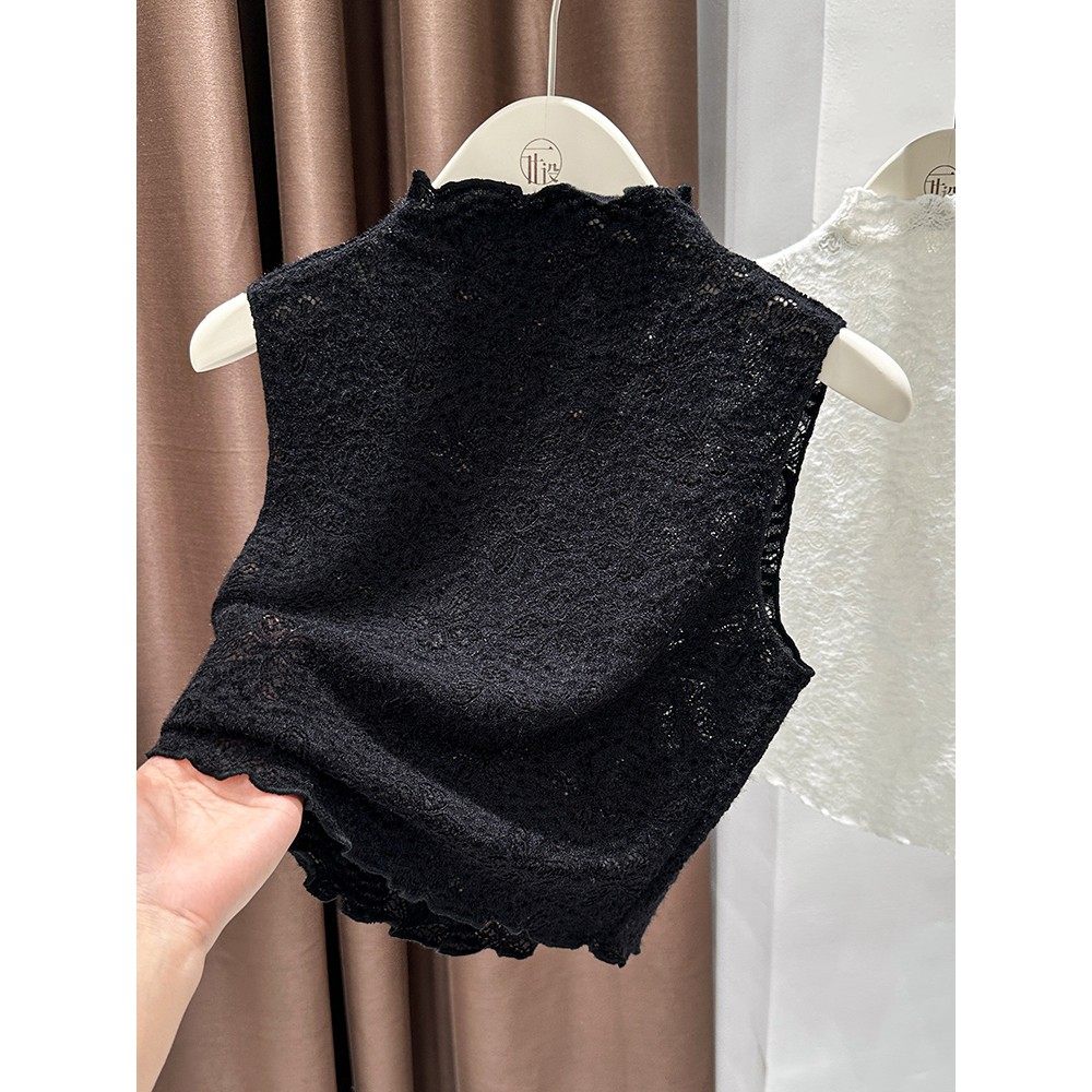 半高领叠穿内搭打底衫女秋冬修身薄款无袖打底背心短款蕾丝假领子
