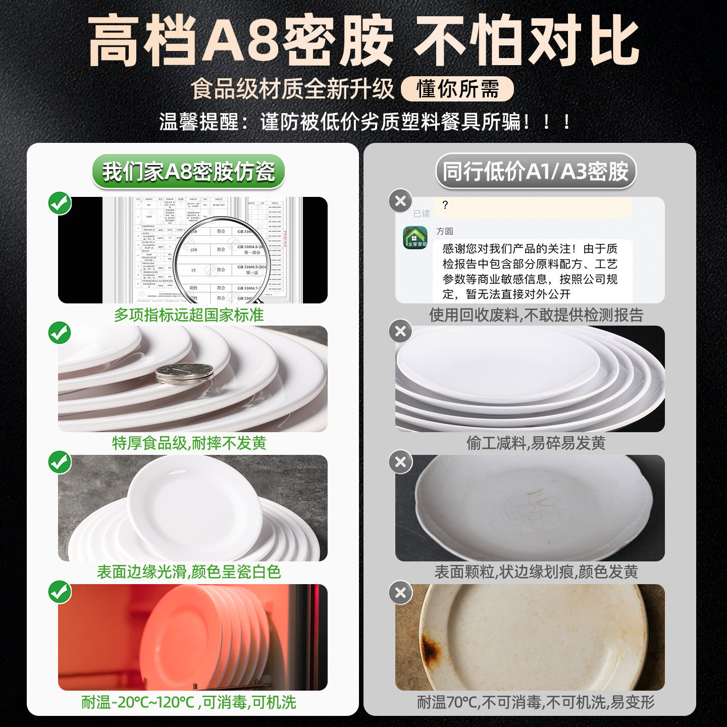 A8食品级仿瓷圆盘耐高温餐厅专用