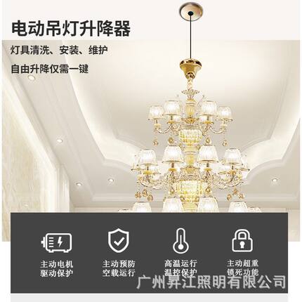水晶吊灯升降机电动遥控旋转酒店别墅复式大厅高空维护灯具升降器
