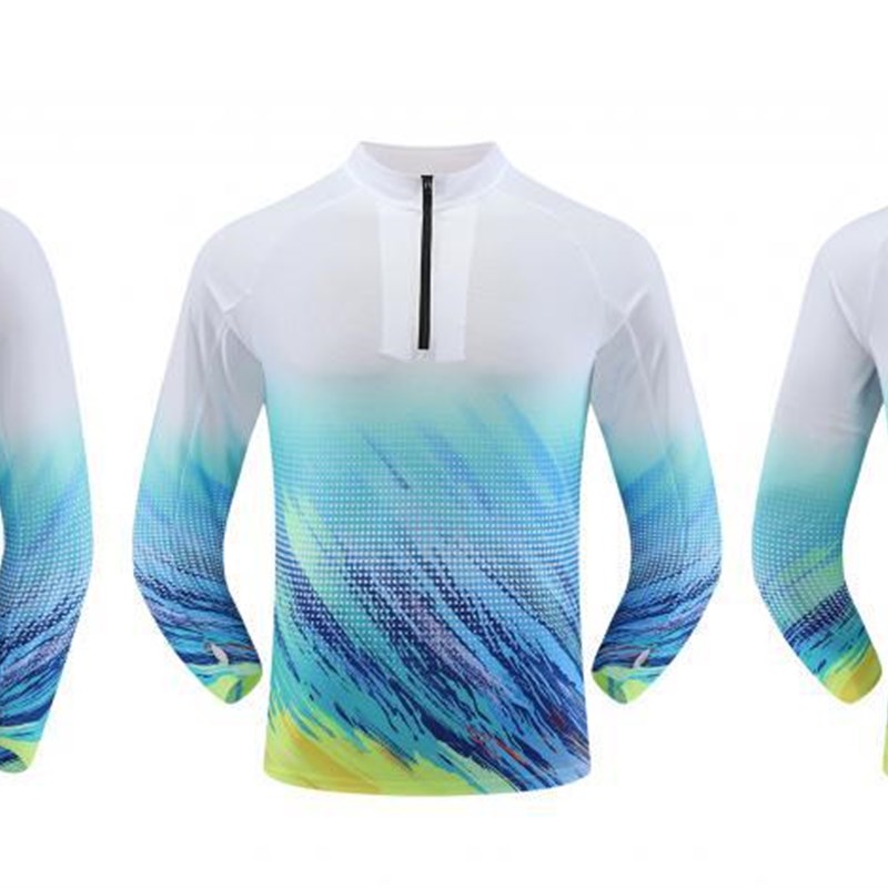 2024新款秋冬渐变色长袖半拉立领羽毛球服套装男女透气乒羽训练服