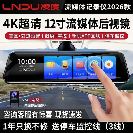 凌度4K行车记录仪前后双摄后视镜流媒体高清夜视倒车影像2026新款