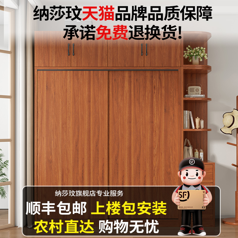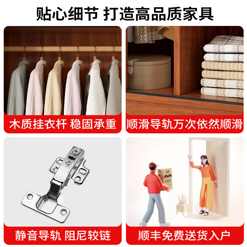 推拉门衣柜家用卧室简易组装出租房衣柜新款储物小型木质儿童柜子