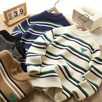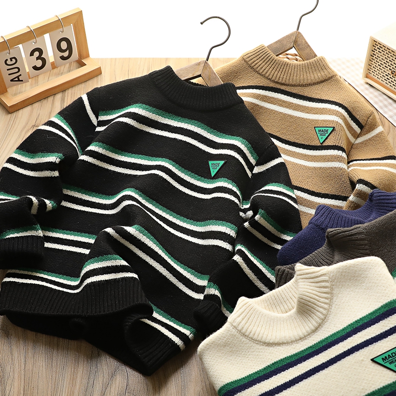 男童毛衣2025新款中大童秋冬季洋气条纹内搭儿童装圆领保暖针织衫