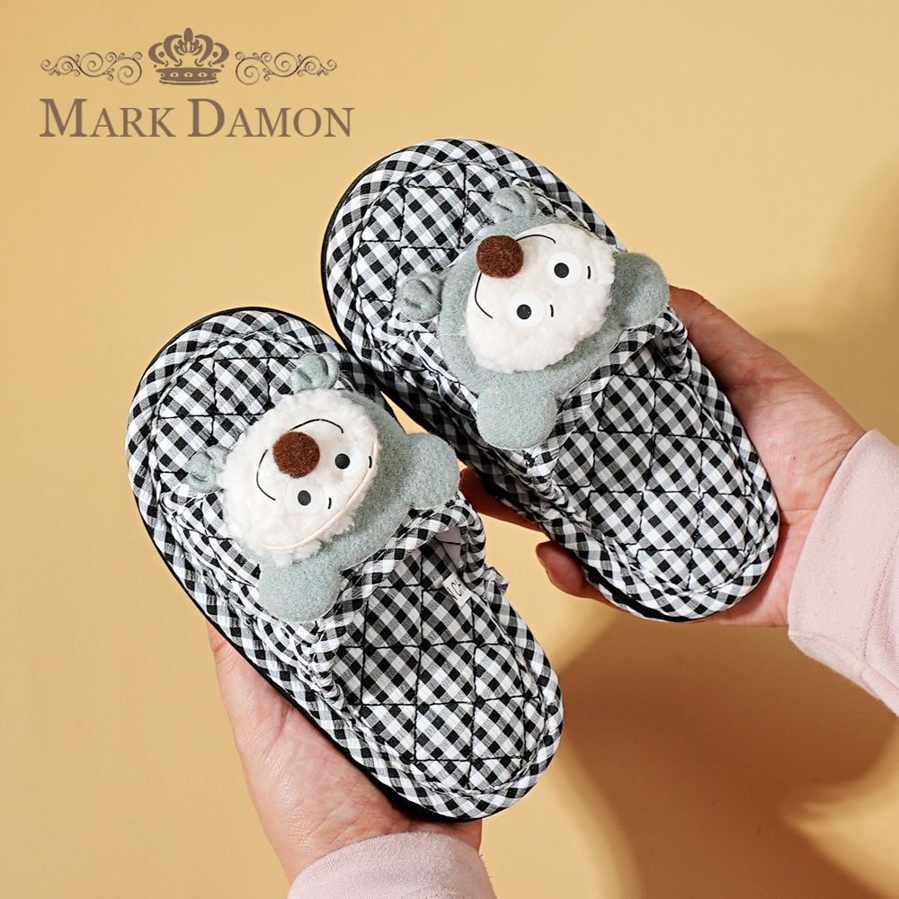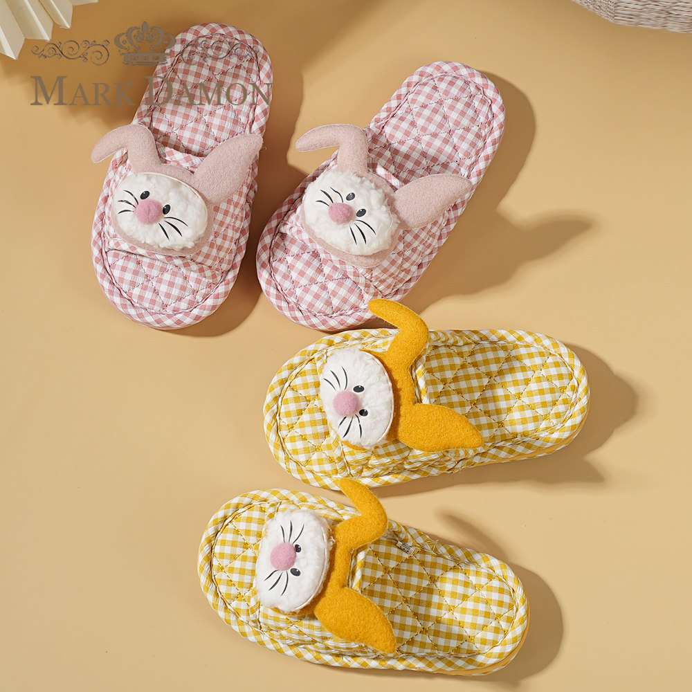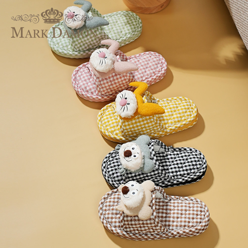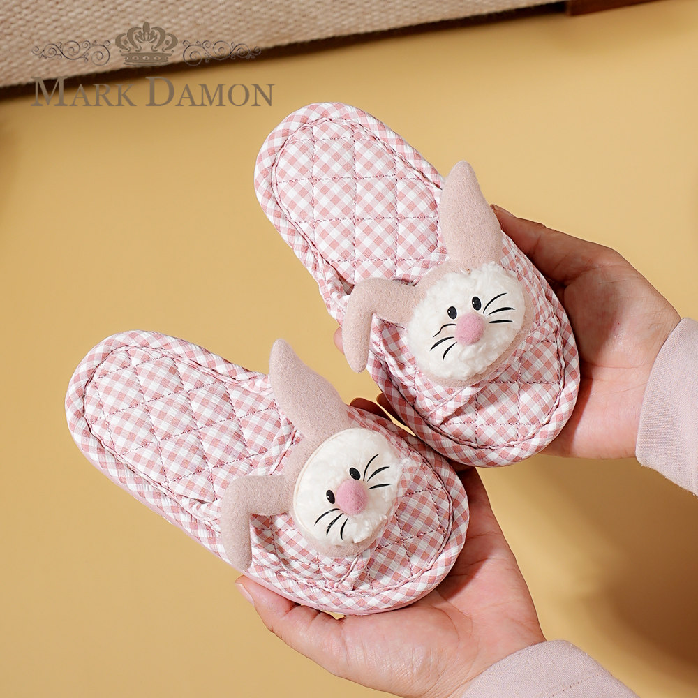 新款儿童纯棉布艺居家三层防滑布底静音无声可爱卡通家居室内拖鞋