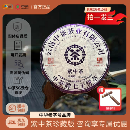 中茶 2024年紫中茶典藏版普洱茶 生茶 高端礼品送长辈领导亲友